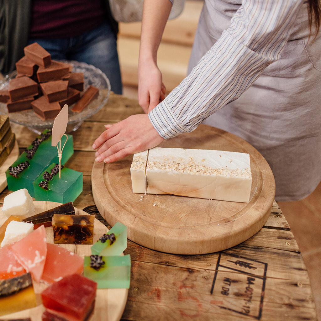 Étant issue d’un milieu hôtelier, j’ai l’impression de retrouver des corrélations entre la cuisine et la fabrication de mes savons.