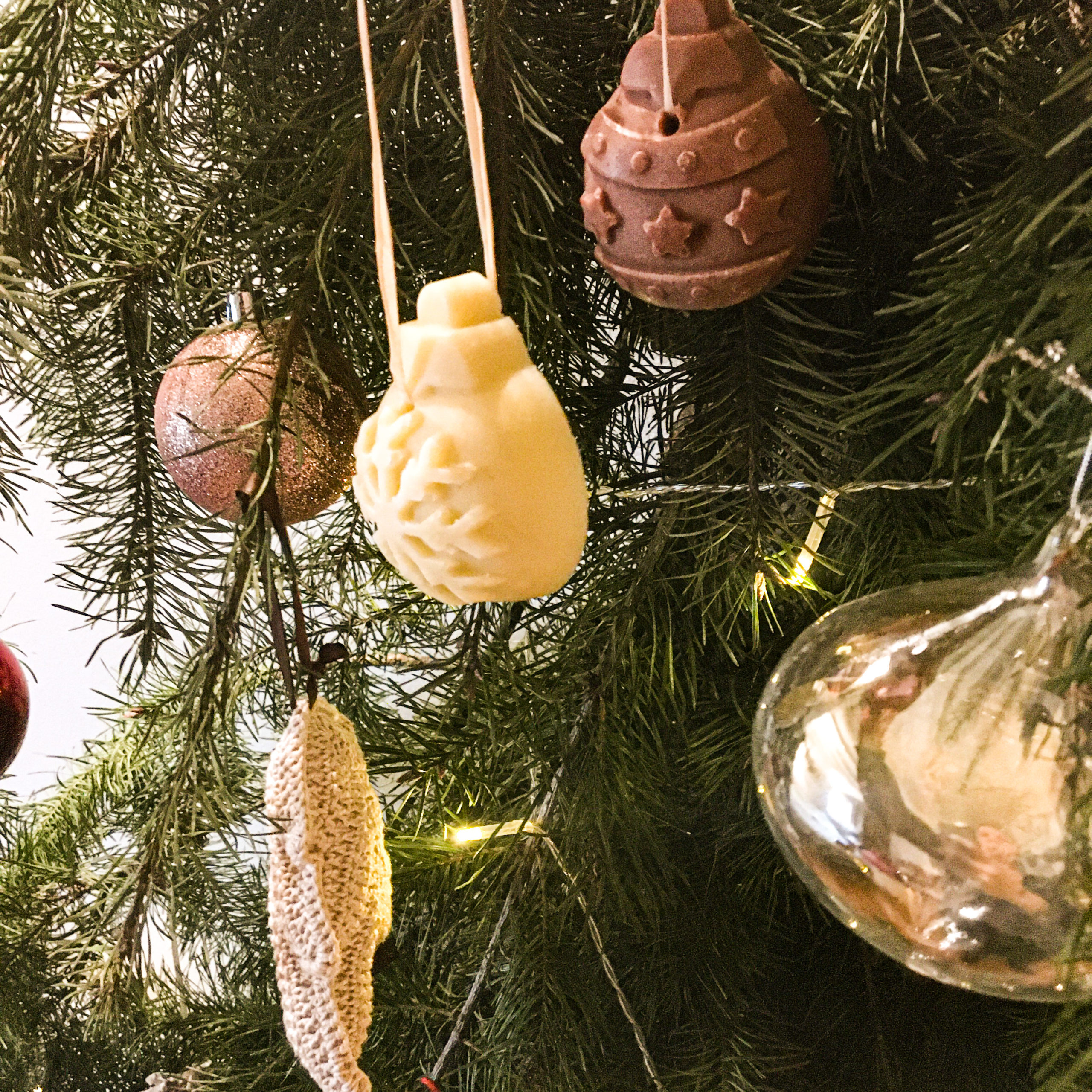 Ces jolis savons sont des jolies idées de cadeaux de Noel, qui allieront naturel, douveur et respect de l’environnement. Ils sont percés par une bande de raphia qui vous permettra de les accrocher dans votre douche, et même sur votre sapin de Noel en attendant que les fêtes arrivent !