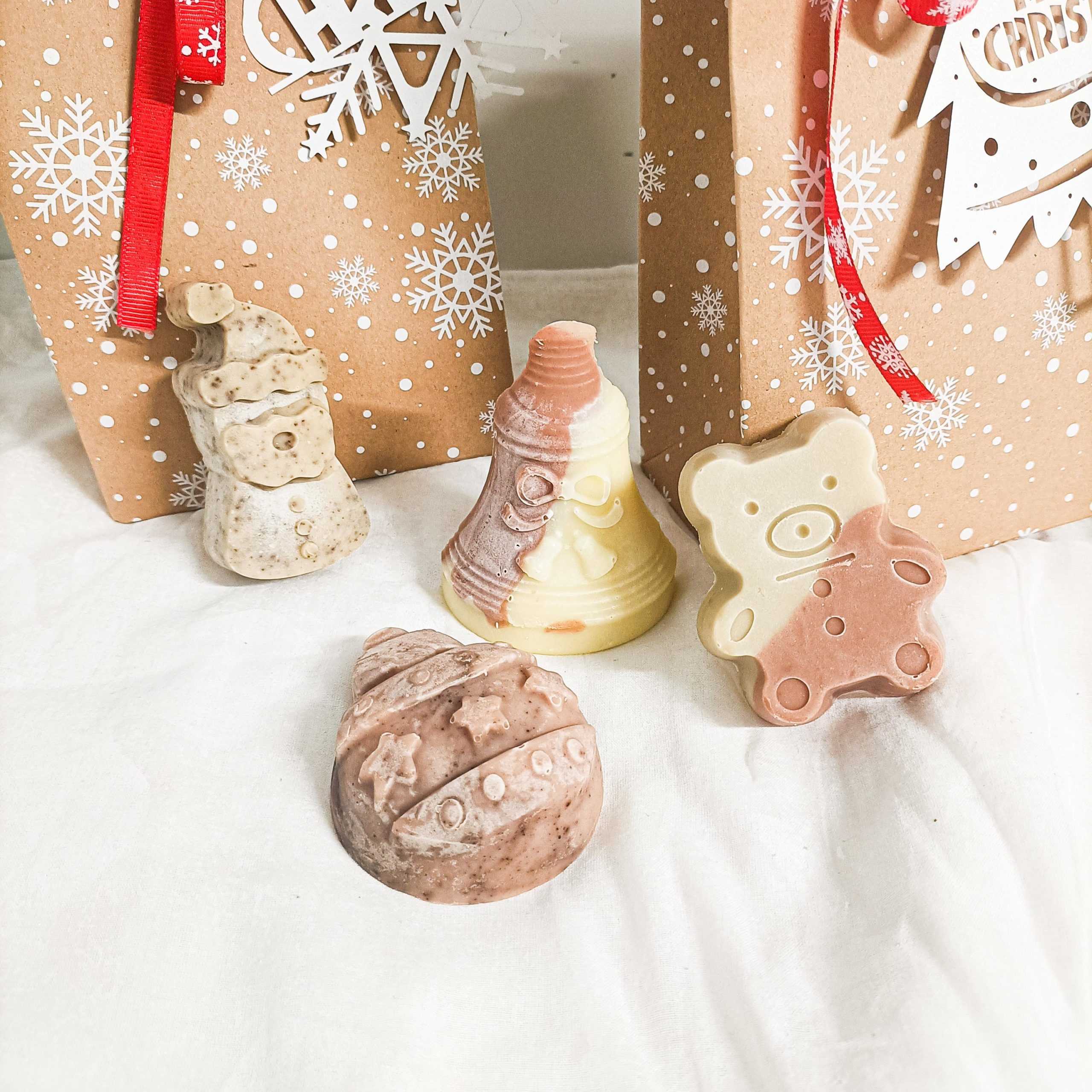 Pour permettre de découvrir ce que sont les savons saponifiés à froid et les bienfaits sur votre peau sans vous reiner, la savonnerie Nan’s vous propose un petit coffret découverte avec des savons très mignons aux formes de Noel !